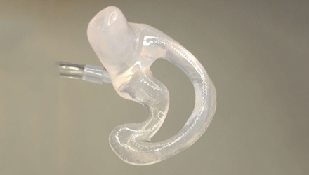 然而,由于尚沒有可以用于3D打印的軟性材料,軟耳模的制作一直采用傳統的手工澆鑄工藝,電子化流程的優勢沒法體現在軟耳模的定制服務上?,F在通過工程師們不懈努力,終于實現了軟耳模的“3D打印”。