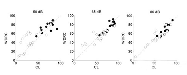 <span style="font-size:16px;"> 重度聽(tīng)力損失是500Hz、1000Hz、2000Hz和4000Hz平均聽(tīng)閾在61dB HL和80dB HL之間的聽(tīng)力損失。重度聽(tīng)損患者更趨向于:</span></p><p><span style="font-size:16px;"> (1)聽(tīng)力損失時(shí)間較久;</span></p><p><span style="font-size:16px;"> (2)有助聽(tīng)器佩戴史;</span></p><p><span style="font-size:16px;"> (3)言語(yǔ)分辨率較低;</span></p><p><span style="font-size:16px;"> (4)噪音環(huán)境中交流困難。</span></p><p><span style="font-size:16px;"> 1、重度聽(tīng)力損失的特點(diǎn)</span></p><p><span style="font-size:16px;"> 60dB HL是單純外毛細(xì)胞損傷和內(nèi)外毛細(xì)胞共同損傷的分界點(diǎn),內(nèi)毛細(xì)胞受損預(yù)示著重度聽(tīng)力損失,這類(lèi)患者的頻率選擇能力降低,在相關(guān)頻率范圍內(nèi)難以分辨兩種聲音。這是噪聲環(huán)境下交流困難的主要原因。</span></p><p><span style="font-size:16px;"> 簡(jiǎn)單來(lái)說(shuō),頻率選擇能力越低,自身降噪能力越差,噪聲下識(shí)別信號(hào)的能力也就越差。</span></p><center><span style="font-size:16px;"><img alt="" src="/upfiles/20181016012659501.png" width="440" height="250" /></span></center><p></p><p><span style="font-size:16px;"> 2、選擇合適的放大策略</span></p><p><span style="font-size:16px;"> 反饋抑制:這項(xiàng)技術(shù)在傳統(tǒng)方法的基礎(chǔ)上有更好的減少?lài)[叫的效果。</span></p><p><span style="font-size:16px;"> 指向性麥克風(fēng):有指向性功能的助聽(tīng)器可以明顯提高信噪比(SNR)。現(xiàn)在自適應(yīng)指向性麥克風(fēng)廣泛地應(yīng)用于大功率耳背機(jī)中。</span></p><p><span style="font-size:16px;"> 對(duì)于噪聲下言語(yǔ)交流困難的重度聽(tīng)力損失患者,選配帶有指向性麥克風(fēng)的助聽(tīng)器效果顯著。</span></p><p><span style="font-size:16px;"> 聽(tīng)力學(xué)家對(duì)重度聽(tīng)損人士的指向性麥克風(fēng)做過(guò)獲益度測(cè)試,發(fā)現(xiàn)平均言語(yǔ)識(shí)別能力提升了14%。</span></p><p><span style="font-size:16px;"> 重度聽(tīng)損患者使用指向性功能時(shí)必須保證一定低頻增益,否則他們會(huì)感覺(jué)聲音不夠洪亮。</span></p><center><span style="font-size:16px;"><img alt="" src="/upfiles/201810160127134771.png" width="440" height="250" /></span></center><p></p><p><span style="font-size:16px;"> 寬動(dòng)態(tài)范圍壓縮線路(WDRC):</span></p><p><span style="font-size:16px;"> 如下圖,白點(diǎn)是重度聽(tīng)力損失患者的輔音識(shí)別得分,黑點(diǎn)是輕度至中度聽(tīng)損患者的輔音識(shí)別得分;每位受試者佩戴四通道的耳背機(jī),驗(yàn)配采用NAL公式;測(cè)試言語(yǔ)聲強(qiáng)度分別為50dB SPL、65dB SPL和80dB SPL;比較WDRC和線性輸出壓縮限制(CL)兩種線路的得分。</span></p><center><span style="font-size:16px;"><img alt="" src="/upfiles/201810160127198326.png" width="600" height="240" /></span></center><p></p><p><span style="font-size:16px;"> 等分位于對(duì)角線附近代表兩種處理方式效果相似,得分位于對(duì)角線上方表示W(wǎng)DRC線路效果更好,而下方則表示CL線路效果更好。</span></p><p><span style="font-size:16px;"> 對(duì)重度聽(tīng)損患者來(lái)說(shuō),輸入輕聲和中等聲時(shí)WDRC線路比CL線路效果更好;輸入響聲時(shí)兩種線路的區(qū)別并不大。所以使用WDRC線路可以獲得比CL線路更高的言語(yǔ)識(shí)別率。</span></p><p><span style="font-size:16px;"> 壓縮速度:壓縮越深可聽(tīng)度越高,因?yàn)榛颊呖梢月?tīng)到更寬的聲音響度范圍。</span></p><p><span style="font-size:16px;"> 快反應(yīng)壓縮(起效和釋放時(shí)間很短)可以降低元音(響度較大)增益并提高輔音(響度較小)增益,從而提高可聽(tīng)度。</span></p><p><span style="font-size:16px;"> 所以理論上來(lái)講,對(duì)于重度聽(tīng)損人士,使用多通道助聽(tīng)器、低壓縮拐點(diǎn)、高壓縮比、音節(jié)壓縮,可以最大程度提高驗(yàn)配效果。</span></p><center><span style="font-size:16px;"><img alt="" src="/upfiles/201810160127304305.png" width="600" height="500" /></span></center><p></p><p><span style="font-size:16px;"> 但壓縮越深就意味著有聲音失真越大,音節(jié)壓縮丟失了重要言語(yǔ)信息,導(dǎo)致輔音分辨不清。若要保留這些信息,則需要慢反應(yīng)壓縮(起效和釋放時(shí)間較長(zhǎng))。</span></p><p><span style="font-size:16px;"> 最好的情況是在提高可聽(tīng)度的同時(shí)還保證信號(hào)不失真,但目前很難實(shí)現(xiàn),找到二者的平衡點(diǎn)是最佳的選配方案。</span></p><center><span style="font-size:16px;"><img alt="" src="/upfiles/20181016012736476.png" width="440" height="250" /></span></center><p></p><p><span style="font-size:16px;"> 上圖為一組重度聽(tīng)力損失患者選配快速和慢速WDRC線路的言語(yǔ)識(shí)別率對(duì)比。</span></p><p><span style="font-size:16px;"> 在輸入聲級(jí)為50和65 dB SPL時(shí),快反應(yīng)壓縮線路的受試者得分明顯比慢反應(yīng)壓縮線路的受試者差;在80 dB SPL輸入聲級(jí)下則并無(wú)明顯差別。</span></p><p><span style="font-size:16px;"> 對(duì)輕度和中度聽(tīng)力損失患者來(lái)說(shuō),無(wú)論何種輸入聲級(jí),兩種壓縮方式的得分都沒(méi)有明顯差別(并未在圖中顯示)。</span></p><p><span style="font-size:16px;"> 對(duì)極重度聽(tīng)力損失患者來(lái)說(shuō),可聽(tīng)度比其他任何信息都重要,快反應(yīng)壓縮線路效果比慢反應(yīng)