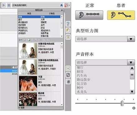 比如,在聲音樣本中選擇“餐廳”,并選擇“正常”,可聽到正常聽力者在“餐廳”環境中聽到的聲音;若選擇“患者”,則可使聽力正常者聽到聽力損失者聽到的聲音,令聽力正常者親身體驗他們所處的“模糊世界”。