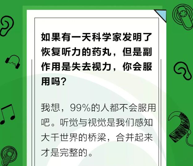 2019年3月29日聽覺有道推出一個(gè)全新的欄目?jī)?nèi)容<br /> 一本正經(jīng)地奇思妙想<br /></span><p><span style="font-size:16px;"> 內(nèi)容全靠一張圖:</span></p><p style="text-align: center;"><span style="font-size:16px;"><img src="/upfiles/201903290834583126.jpg" alt="" /><br /></span></p><span style="font-size:16px;"> 言語(yǔ)雖然不多僅僅三兩句<br /> 大家隨便看看就行了<br /> 可我們一定得往心里去啊<br /> 嚴(yán)肅點(diǎn):愛耳君估計(jì),99%的人心里都在想,誰(shuí)會(huì)那么傻會(huì)做“拆東墻補(bǔ)西墻”的事情呢。<br /> 在現(xiàn)實(shí)中,很多恢復(fù)聽力藥物的研究就尚處于這個(gè)階段,我們?cè)谛侣勆峡吹娇茖W(xué)家已經(jīng)可以讓小老鼠通過(guò)注射藥物等方式恢復(fù)聽力,然而我們沒有看到的是,這類方式目前還不能控制其極大的副作用,這種副作用可不僅僅是失明那么簡(jiǎn)單,有可能還會(huì)丟掉性命。<a href="http://m.jjrhy.com/listDetail.aspx?id=102818" target="_blank"><strong><span style="color:#3333ff;">五個(gè)不容易被察覺的耳部疾病</span></strong></a><br /></span><p><span style="font-size:16px;"> 誠(chéng)然,科研的每一分進(jìn)步都難得可貴,未來(lái)會(huì)是怎樣的,愛耳君不知道。愛耳君希望有朝一日科學(xué)家能真正發(fā)明出一款“沒有副作用”的藥丸,讓全天下聽障人士都能恢復(fù)聽力。但我們也需正視現(xiàn)實(shí)把握當(dāng)下,早發(fā)現(xiàn)、早干預(yù)、早治療。</span></p><span style="font-size:16px;"> 相關(guān)推薦閱讀:<a href="http://m.jjrhy.com/listDetail.aspx?id=102841" target="_blank"><strong><span style="color:#3333ff;">如何正確應(yīng)對(duì)聽力損失?聽力保健的8大誤區(qū)</span></strong></a><br /><br /><br /> 聽覺有道助聽器價(jià)格:http://m.jjrhy.com/products.html<br /><br /> 發(fā)布于2019年3月29日 星期五<br /><br /> 上午8:36分</span>" />