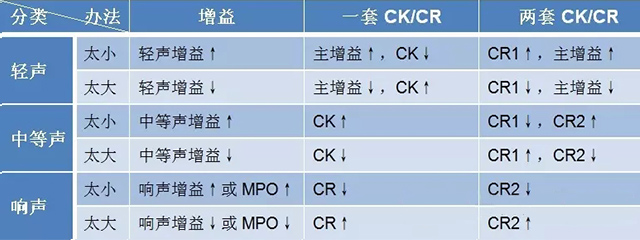 事實上,各企業的助聽器軟件往往可以直接調節輕聲增益、中等聲增益、大聲增益與主增益而間接控制壓縮參數,有的軟件可見一套CK/CR,有的軟件可見兩套CK/CR。有些軟件會自動默認為自適應壓縮方式,能夠根據聲音強度差異自動調整。