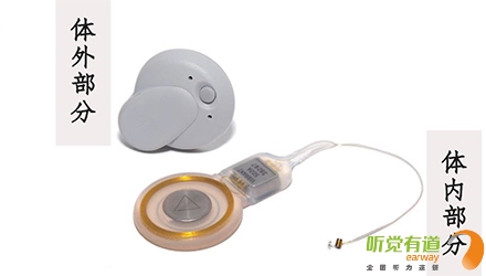 體外部分稱為聲音處理器,包括麥克風、信號處理器、電池等,依靠磁性依附于耳后。
