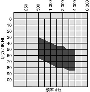 ①中至重度感音神經性聽損者,氣導閾值在圖1陰影范圍內;