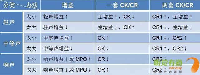 顧名思義,壓縮就是把超過一定強(qiáng)度的聲音減小至聽損患者縮小的殘余聽覺動(dòng)態(tài)范圍里。相較于線性放大,壓縮可以有效達(dá)到“小聲聽得見,大聲受得了”的要求,尤其適用于感音神經(jīng)性患者。</p><p> 壓縮參數(shù)主要有三個(gè):壓縮拐點(diǎn)/壓縮閾值(CK/CT)、壓縮比(CR)與壓縮時(shí)間(起效時(shí)間AT,釋放時(shí)間RT)。下圖:橫坐標(biāo)代表輸入級(jí),即未經(jīng)助聽器放大的聲音;縱坐標(biāo)代表輸出級(jí),即放大后的聲音。輸入與輸出的關(guān)系:輸出級(jí)=輸入級(jí)+增益,亦可表示:放大后的聲音=放大前的聲音+放大量。有了這個(gè)基礎(chǔ),我們就可以清楚地理解這兩個(gè)參數(shù)的含義并進(jìn)行調(diào)節(jié)。</p><p> 1、壓縮拐點(diǎn)(CK):線性放大與壓縮放大的臨界輸入級(jí),此處為60 dB SPL,即輸入聲強(qiáng)度在60 dB SPL以下時(shí)為線性放大,超過60 dB SPL為壓縮放大。①紅線的輸入級(jí)范圍為0~60 dB,這段的聲音為線性放大,隨意找一個(gè)輸入級(jí),用它對(duì)應(yīng)的輸出級(jí)減去輸入級(jí),得出線性放大的增益為30 dB;②當(dāng)輸入級(jí)大于60 dB時(shí),綠色曲線為壓縮放大,輸出與對(duì)應(yīng)輸入的差值不再是30 dB,而是隨著輸入級(jí)增加,增益逐漸減小;③當(dāng)輸出達(dá)到最大輸出限制時(shí),輸出不再增大,保持在最大輸出限制位置。</p><p> </p><center><img alt="" src="/upfiles/201906120320158907.png" width="440" height="250" /></center><p></p><p> 2、壓縮比(CR):輸入級(jí)差值與輸出級(jí)差值的比值。上圖中線性狀態(tài)時(shí)壓縮比為1:1,可以找兩對(duì)數(shù)值,(輸入60-輸入0)/(輸出90-輸出30)=60/60=1:1。壓縮狀態(tài)時(shí)壓縮比為2:1,同樣可以找兩對(duì)數(shù)值,(輸入120-輸入60)/(輸出120-輸出90)=60/30=2:1。</p><p> 3、壓縮方式(CM):由于起效時(shí)間(AT)與釋放時(shí)間(RT)的不同組合構(gòu)成不同的壓縮方式。</p><p> 助聽器由線性變換到壓縮時(shí)所需的穩(wěn)定時(shí)間為起效時(shí)間。起效時(shí)間短,說明對(duì)大聲壓縮及時(shí),不會(huì)造成聽力傷害;起效時(shí)間長(zhǎng),說明對(duì)大聲壓縮緩慢,有可能短暫感覺刺耳,但可以最大程度還原小聲與大聲的強(qiáng)度差異感。</p><p> 助聽器由壓縮回到線性時(shí)所需的穩(wěn)定時(shí)間為釋放時(shí)間。釋放時(shí)間短,說明對(duì)小聲及時(shí)線性放大,避免小聲聽不見;釋放時(shí)間長(zhǎng),說明對(duì)小聲還在壓縮,放大不及時(shí),有可能小聲聽不見,但可以最大程度還原大聲和小聲的強(qiáng)度差異感。</p><p> 我們可以做個(gè)比喻來了解壓縮的概念。假使你在高速路上,突然前方出現(xiàn)一個(gè)大大的警示牌,提示有事故發(fā)生,這時(shí)你需要迅速踩剎車以防撞擊。越早踩剎車相當(dāng)于越早壓縮(壓縮拐點(diǎn)越小),剎車的力度越大相當(dāng)于壓縮比越大,開始剎車至?xí)r速降至安全時(shí)速所需時(shí)間相當(dāng)于起效時(shí)間,過了事故點(diǎn)踩油門,車速恢復(fù)至高速所需時(shí)間相當(dāng)于釋放時(shí)間。</p><p> 壓縮是為了保護(hù)人們聽覺系統(tǒng)免受瞬間或持續(xù)中、大強(qiáng)度聲音的刺激,同時(shí)又能有效放大各種小聲的基本技術(shù)手段,可以使小聲、中等聲和大聲無一遺漏地進(jìn)入聽障患者縮小的聽覺動(dòng)態(tài)范圍中。</p><p> 恰當(dāng)?shù)膲嚎s拐點(diǎn)與壓縮比滿足了聽障患者達(dá)到“小聲聽得見、大聲受得了”的要求,而壓縮的起效時(shí)間與釋放時(shí)間設(shè)定需要考慮聽障患者個(gè)性化的聆聽喜好。</p><p> 起效時(shí)間與釋放時(shí)間都短,優(yōu)點(diǎn)是小聲放大及時(shí)、大聲壓縮及時(shí),即小聲聽得到大聲不覺吵,缺點(diǎn)是大小聲強(qiáng)度差異感不大;起效時(shí)間短釋放時(shí)間長(zhǎng),優(yōu)點(diǎn)是大小聲強(qiáng)度差異感真實(shí),音節(jié)間噪聲小,缺點(diǎn)是有可能小聲放大不足。</p><p> 事實(shí)上,各企業(yè)的助聽器軟件往往可以直接調(diào)節(jié)輕聲增益、中等聲增益、大聲增益與主增益而間接控制壓縮參數(shù),有的軟件可見一套CK/CR,有的軟件可見兩套CK/CR。有些軟件會(huì)自動(dòng)默認(rèn)為自適應(yīng)壓縮方式,能夠根據(jù)聲音強(qiáng)度差異自動(dòng)調(diào)整。</p><p> 下圖匯總了對(duì)不同強(qiáng)度聲音不適的解決辦法,供大家參考。</p><p> </p><p><center><img alt="" src="/upfiles/201906120320202761.png" width="640" height="240" /></center><center><p style="text-align: left;"> 更多詳情請(qǐng)登錄聽覺有道助聽器m.jjrhy.com</p><br /></center></p>" />