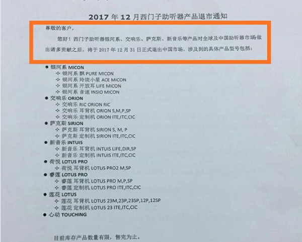 <p microsoft="" yahei="" ui="" simsun="" segoe="" tahoma="" helvetica="" sans-serif="" font-size:="" 14px="" text-align:="" center="" style="padding: 5px 0px; margin: 0px; color: rgb(51, 51, 51); font-family: "Microsoft YaHei UI", "Microsoft YaHei", SimSun, "Segoe UI", Tahoma, Helvetica, sans-serif; font-size: 16px; text-align: center;"><img src="http://m.jjrhy.com/upfiles/201712110502357735.jpg" alt="" style="border: 0px;" /></p><p microsoft="" yahei="" ui="" simsun="" segoe="" tahoma="" helvetica="" sans-serif="" font-size:="" 14px="" text-align:="" center="" style="padding: 5px 0px; margin: 0px; color: rgb(51, 51, 51); font-family: "Microsoft YaHei UI", "Microsoft YaHei", SimSun, "Segoe UI", Tahoma, Helvetica, sans-serif; font-size: 16px; text-align: center;"><br /></p><p microsoft="" yahei="" ui="" simsun="" segoe="" tahoma="" helvetica="" sans-serif="" font-size:="" 14px="" text-align:="" center="" style="padding: 5px 0px; margin: 0px; color: rgb(51, 51, 51); font-family: "Microsoft YaHei UI", "Microsoft YaHei", SimSun, "Segoe UI", Tahoma, Helvetica, sans-serif; font-size: 16px; text-align: center;"><img src="http://m.jjrhy.com/upfiles/201712201117438957.jpg" alt="" style="border: 0px;" /><br /></p><p microsoft="" yahei="" ui="" simsun="" segoe="" tahoma="" helvetica="" sans-serif="" font-size:="" 14px="" text-align:="" center="" style="padding: 5px 0px; margin: 0px; color: rgb(51, 51, 51); font-family: "Microsoft YaHei UI", "Microsoft YaHei", SimSun, "Segoe UI", Tahoma, Helvetica, sans-serif; font-size: 16px; text-align: center;"><br /></p><p microsoft="" yahei="" ui="" simsun="" segoe="" tahoma="" helvetica="" sans-serif="" font-size:="" 14px="" text-align:="" center="" style="padding: 5px 0px; margin: 0px; color: rgb(51, 51, 51); font-family: "Microsoft YaHei UI", "Microsoft YaHei", SimSun, "Segoe UI", Tahoma, Helvetica, sans-serif; font-size: 16px; text-align: center;">2014年11月16日西門子決定出售助聽器業(yè)務</p><p microsoft="" yahei="" ui="" simsun="" segoe="" tahoma="" helvetica="" sans-serif="" font-size:="" 14px="" text-align:="" center="" style="padding: 5px 0px; margin: 0px; color: rgb(51, 51, 51); font-family: "Microsoft YaHei UI", "Microsoft YaHei", SimSun, "Segoe UI", Tahoma, Helvetica, sans-serif; font-size: 16px; text-align: center;"> </p><center microsoft="" yahei="" ui="" simsun="" segoe="" tahoma="" helvetica="" sans-serif="" font-size:="" 14px="" style="color: rgb(51, 51, 51); font-family: "Microsoft YaHei UI", "Microsoft YaHei", SimSun, "Segoe UI", Tahoma, Helvetica, sans-serif; font-size: 16px;"><img src="http://m.jjrhy.com/upfiles/20171211050740709.jpg" alt="" style="border: 0px;" /><br /></center><center microsoft="" yahei="" ui="" simsun="" segoe="" tahoma="" helvetica="" sans-serif="" font-size:="" 14px="" style="color: rgb(51, 51, 51); font-family: "Microsoft YaHei UI", "Microsoft YaHei", SimSun, "Segoe UI", Tahoma, Helvetica, sans-serif; font-size: 16px;"><br /></center><p microsoft="" yahei="" ui="" simsun="" segoe="" tahoma="" helvetica="" sans-serif="" font-size:="" 14px="" text-align:="" center="" style="padding: 5px 0px; margin: 0px; color: rgb(51, 51, 51); font-family: "Microsoft YaHei UI", "Microsoft YaHei", SimSun, "Segoe UI", Tahoma, Helvetica, sans-serif; font-size: 16px; text-align: center;">2017年12月31日西門子助聽器將正式退出中國市場</p><p microsoft="" yahei="" ui="" simsun="" segoe="" tahoma="" helvetica="" sans-serif="" font-size:="" 14px="" text-align:="" center="" style="padding: 5px 0px; margin: 0px; color: rgb(51, 51, 51); font-family: "Microsoft YaHei UI", "Microsoft YaHei", SimSun, "Segoe UI", Tahoma, Helvetica, sans-serif; font-size: 16px; text-align: center;"> </p><center microsoft="" yahei="" ui="" simsun="" segoe="" tahoma="" helvetica="" sans-serif="" font-size:="" 14px="" style="color: rgb(51, 51, 51); font-family: "Microsoft YaHei UI", "Microsoft YaHei", SimSun, "Segoe UI", Tahoma, Helvetica, sans-serif; font-size: 16px;"><img src="http://m.jjrhy.com/upfiles/201712110508305244.png" alt="" style="border: 0px;" /><br /></center><center microsoft="" yahei="" ui="" simsun="" segoe="" tahoma="" helvetica="" sans-serif="" font-size:="" 14px="" style="color: rgb(51, 51, 51); font-family: "Microsoft YaHei UI", "Microsoft YaHei", SimSun, "Segoe UI", Tahoma, Helvetica, sans-serif; font-size: 16px;"><br /></center><p microsoft="" yahei="" ui="" simsun="" segoe="" tahoma="" helvetica="" sans-serif="" font-size:="" 14px="" text-align:="" center="" style="padding: 5px 0px; margin: 0px; color: rgb(51, 51, 51); font-family: "Microsoft YaHei UI", "Microsoft YaHei", SimSun, "Segoe UI", Tahoma, Helvetica, sans-serif; font-size: 16px; text-align: center;">銀河系、交響樂、薩克斯、新音樂、荷悅、睿蓮、蓮花、心動……</p><p microsoft="" yahei="" ui="" simsun="" segoe="" tahoma="" helvetica="" sans-serif="" font-size:="" 14px="" text-align:="" center="" style="padding: 5px 0px; margin: 0px; color: rgb(51, 51, 51); font-family: "Microsoft YaHei UI", "Microsoft YaHei", SimSun, "Segoe UI", Tahoma, Helvetica, sans-serif; font-size: 16px; text-align: center;">西門子助聽器系列產(chǎn)品悉數(shù)退市</p><p microsoft="" yahei="" ui="" simsun="" segoe="" tahoma="" helvetica="" sans-serif="" font-size:="" 14px="" text-align:="" center="" style="padding: 5px 0px; margin: 0px; color: rgb(51, 51, 51); font-family: "Microsoft YaHei UI", "Microsoft YaHei", SimSun, "Segoe UI", Tahoma, Helvetica, sans-serif; font-size: 16px; text-align: center;"> </p><center microsoft="" yahei="" ui="" simsun="" segoe="" tahoma="" helvetica="" sans-serif="" font-size:="" 14px="" style="color: rgb(51, 51, 51); font-family: "Microsoft YaHei UI", "Microsoft YaHei", SimSun, "Segoe UI", Tahoma, Helvetica, sans-serif; font-size: 16px;"><img src="http://m.jjrhy.com/upfiles/201712110509096639.jpg" alt="" style="border: 0px;" /><br /></center><p microsoft="" yahei="" ui="" simsun="" segoe="" tahoma="" helvetica="" sa