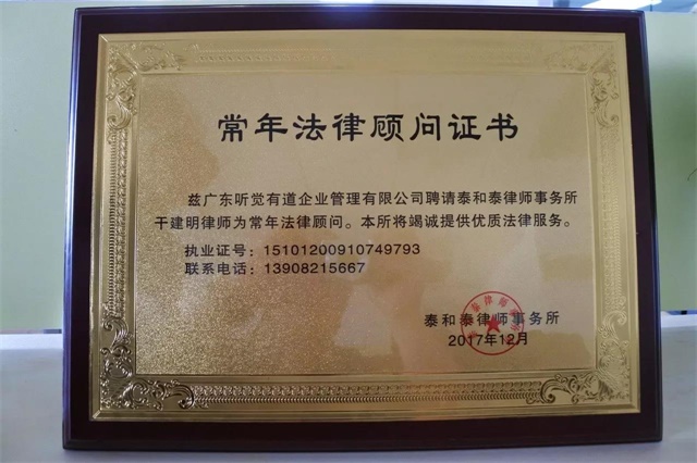 <span style="font-size:16px;"></span></p><p style="text-align: center;"><span style="font-size:16px;"><img src="/upfiles/201801230437528599.jpg" alt="" /><br /></span></p><p style="text-align: center;"><span style="font-size:16px;"><br /></span></p><p><span style="font-size:16px;"> 為從源頭上有效防范和化解經(jīng)營風(fēng)險,聽覺有道全國運(yùn)營管理中心聘請著名律師干建明先生及其團(tuán)隊擔(dān)任聽覺有道公司投融資法律事務(wù)常年法律顧問,聘請著名律師潘秋波先生及其團(tuán)隊擔(dān)任聽覺有道日常經(jīng)營法律事務(wù)常年法律顧問,聘請著名財稅專家周晨先生及其團(tuán)隊擔(dān)任常年財稅顧問,共同為正在快速擴(kuò)張的全國聽力連鎖業(yè)務(wù)保駕護(hù)航。</span></p><p><span style="font-size:16px;"> 據(jù)悉,根據(jù)助聽器行業(yè)以及聽覺有道日常經(jīng)營活動的特點(diǎn),在法律顧問方面聽覺有道將獲得企業(yè)日常運(yùn)營法律風(fēng)險防控、各類業(yè)務(wù)合同法律風(fēng)險防控、企業(yè)知識產(chǎn)權(quán)風(fēng)險防控、日常法律咨詢幫助等專業(yè)服務(wù)。</span></p><p><span style="font-size:16px;"><br /></span></p><p><center><img src="/upfiles/201801230437323749.jpg" alt="" /></center><center><br /></center></p><p><center><img src="/upfiles/201801230438078765.jpg" alt="" /></center><center><br /></center></p><p></p><p><span style="font-size:16px;"> 根據(jù)聽覺有道發(fā)展規(guī)劃,在財稅顧問方面,聽覺有道將獲得專業(yè)財務(wù)規(guī)劃與稅務(wù)籌劃、資本運(yùn)營策劃等專業(yè)咨詢服務(wù)。</span></p><p><span style="font-size:16px;"><br /></span></p><p><center><img src="/upfiles/201801230438149231.jpg" alt="" /></center><center><br /></center></p><p></p><p><span style="font-size:16px;"> 聽覺有道一直秉承合法經(jīng)營、公平競爭的原則,相信干建明先生及其團(tuán)隊、潘秋波先生及其團(tuán)隊、周晨先生及其團(tuán)隊,將為這一原則的貫徹執(zhí)行,發(fā)揮不可估量的作用,有力地保障聽覺有道穩(wěn)健、快速的發(fā)展。</span></p><p><span style="font-size:16px;"></span></p>" />