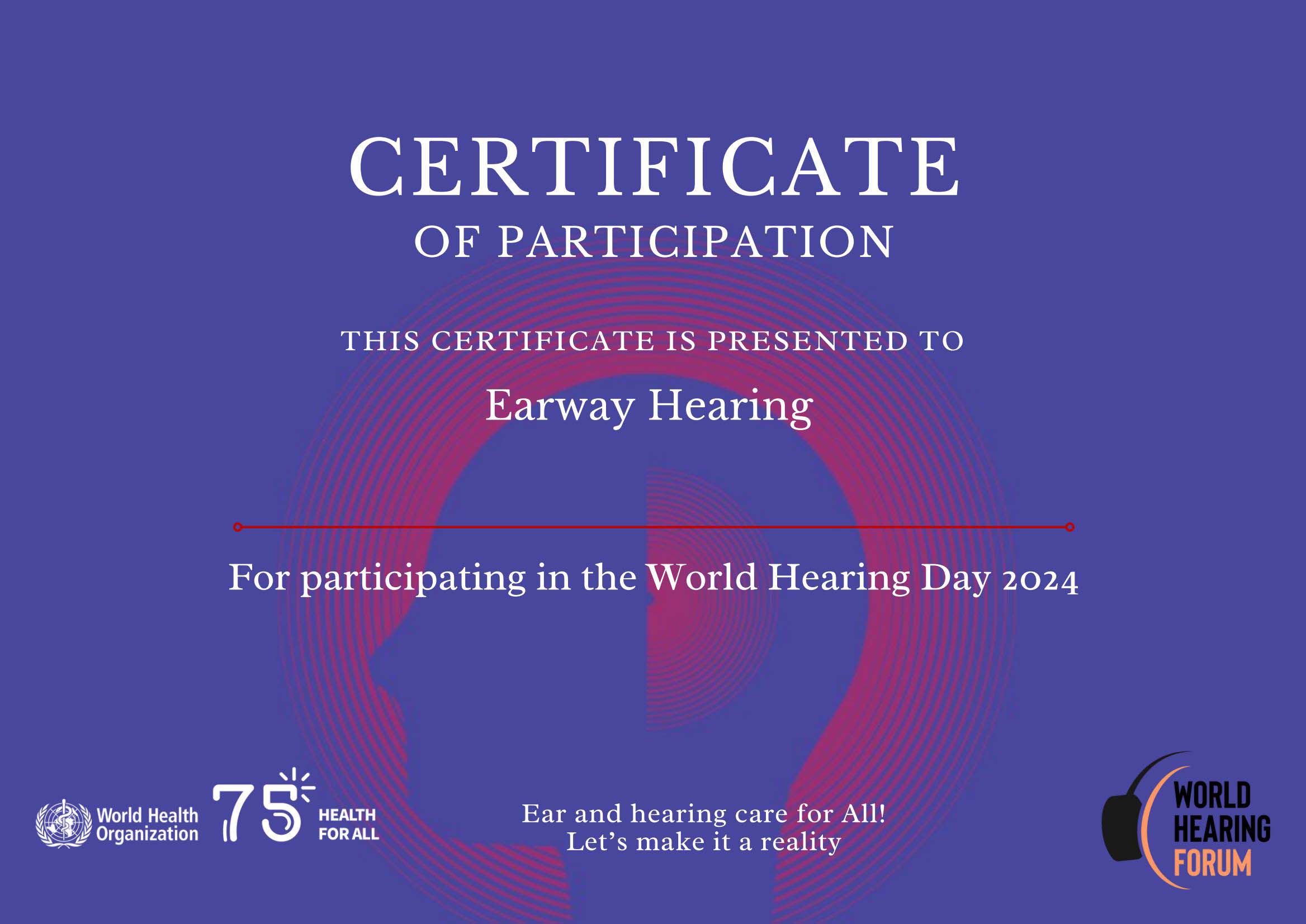 <span style="white-space:pre"> </span>7月22日,聽覺有道全國聽力連鎖再次獲世界衛生組織(WHO)授予榮譽證書!<br /><br /> 連續三年獲WHO授予證書,是鼓勵,也是敦促!<br /></span><p><br /></p><p style="text-align: center;"><img src="/upfiles/202407231123513026.jpg" width="640" alt="" /><br /></p><p style="text-align: center;"><br /></p><span style="font-size:16px;"> 2024年3月3日,是第25個“全國愛耳日”,也是第12個“世界聽力日”。<br /><br /> 今年“世界聽力日”的主題為:“Changing mindsets:let's make ear and hearing care a reality for all!”,呼吁改變觀念,讓所有人的耳部和聽力保健成為現實。<br /><br /> 聽覺有道向WHO提交的活動主題為“Better Hearing,Better Life”,更好的聆聽讓生活更美好。<br /></span><p><br /></p><p style="text-align: center;"><img src="/upfiles/202407231124159995.jpg" width="640" alt="" /><br /></p><p style="text-align: center;"><br /></p><span style="font-size:16px;"> 數百家聽力中心分別在四川、廣東、福建、河南、重慶等地舉辦愛耳護耳活動,科普聽力知識、檢查耳道、測量血壓和提供康復指導。活動超過15000人參與,獲得廣泛好評。<br /><br /> 我們與當地醫院、殘聯、社區、特殊學校等合作,不少用戶朋友也積極參與其中,共同宣傳“保護聽力,愛耳護耳”的重要性。<br /><br /> 2024年6月24日,國家衛生健康委發布《關于開展老年聽力健康促進行動(2024—2027年)的通知》,強調聽損不良影響,號召加強聽力科普,開展聽力公益活動。<br /><br /> 科技助聽,共享美好生活!聽覺有道在行動!</span>" />